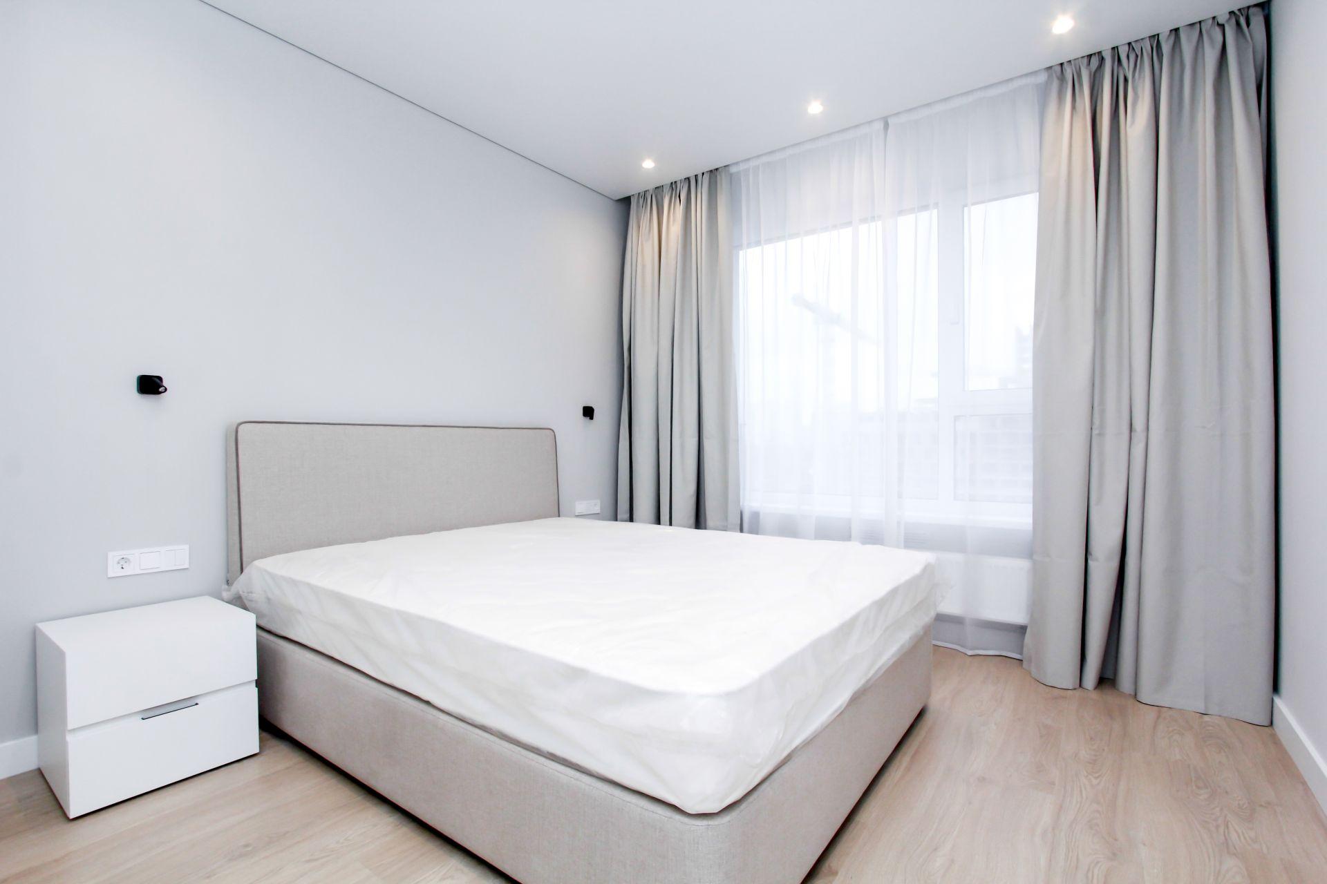 Интерьер выполнен в нейтральной цветовой гамме. Жилье оборудовано всем необходимым: кухня оснащена встроенной бытовой техникой (холодильник, варочная панель, духовой шкаф), а в комнатах установлены кондиционеры.
