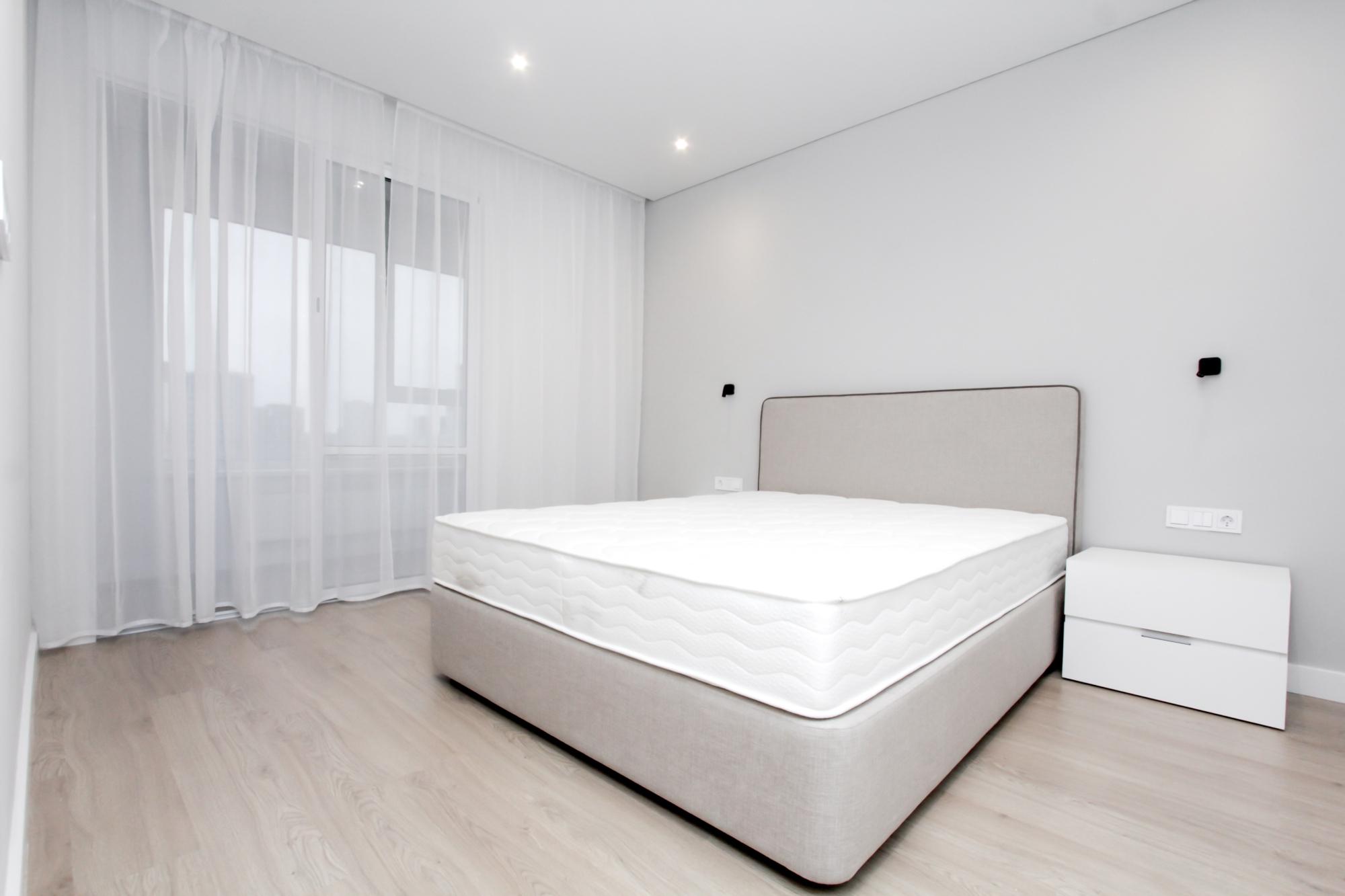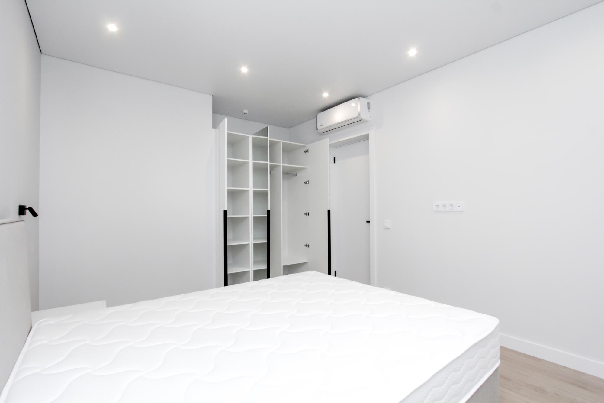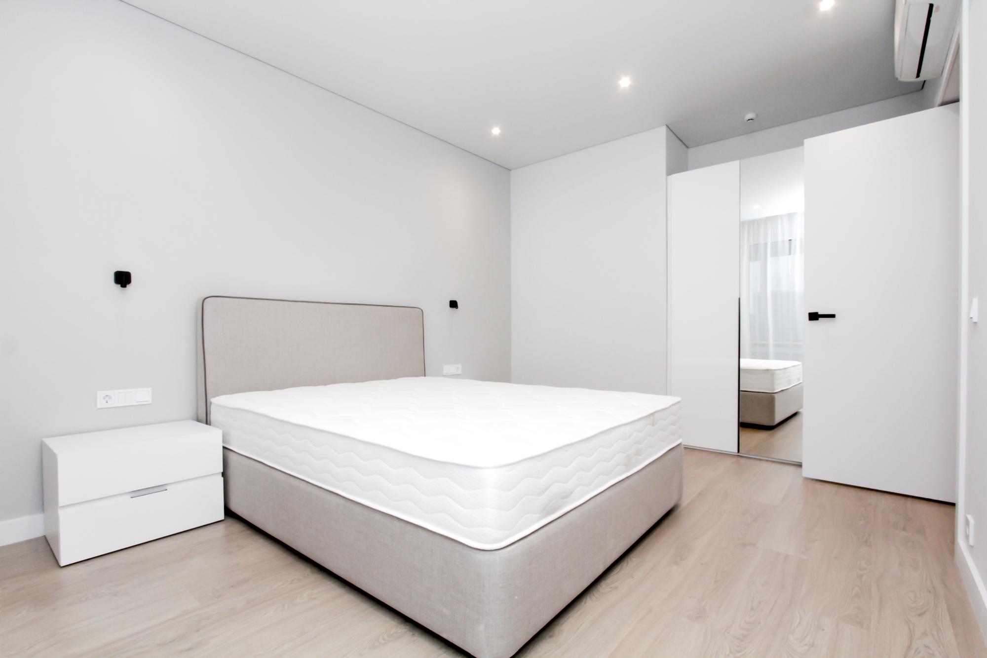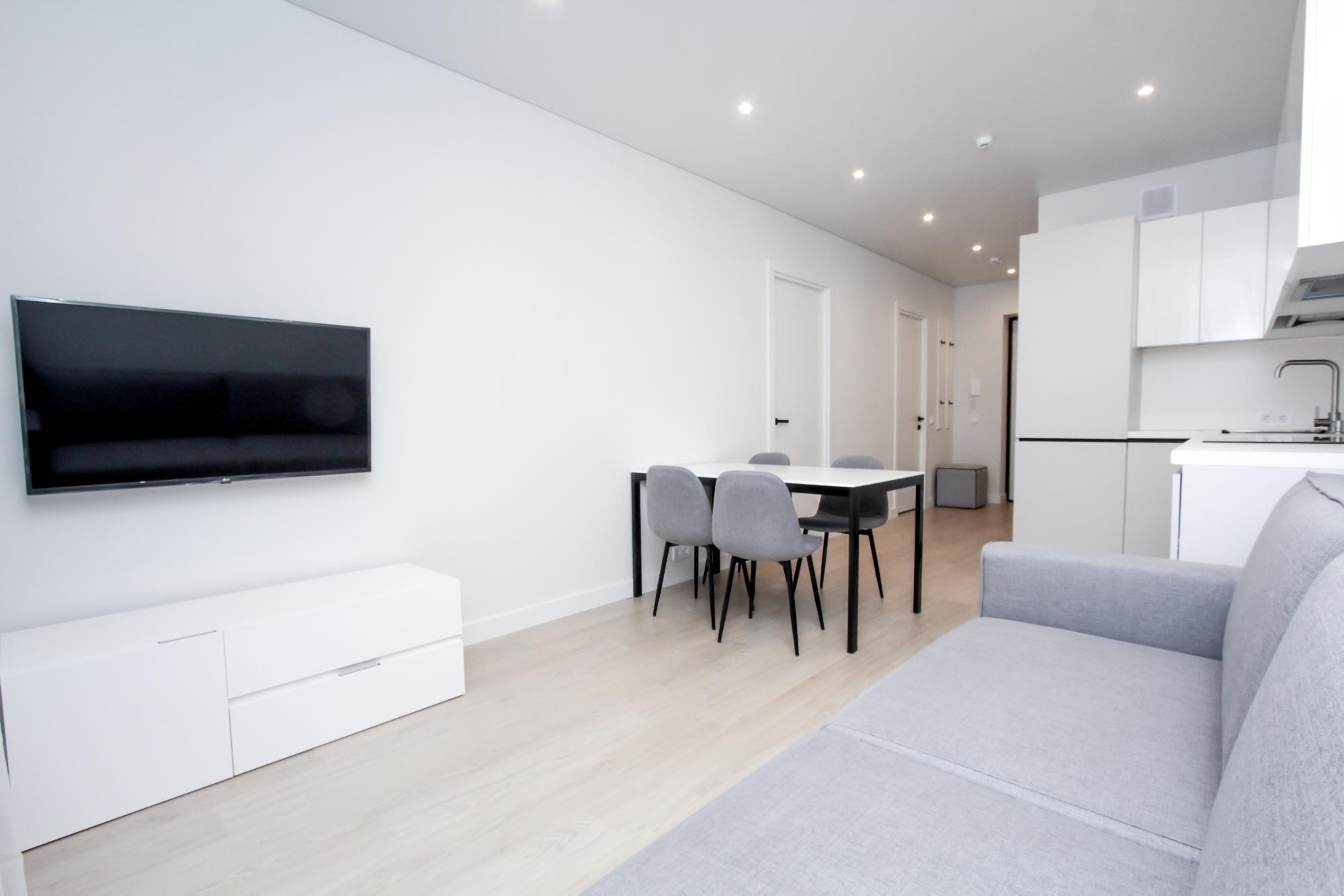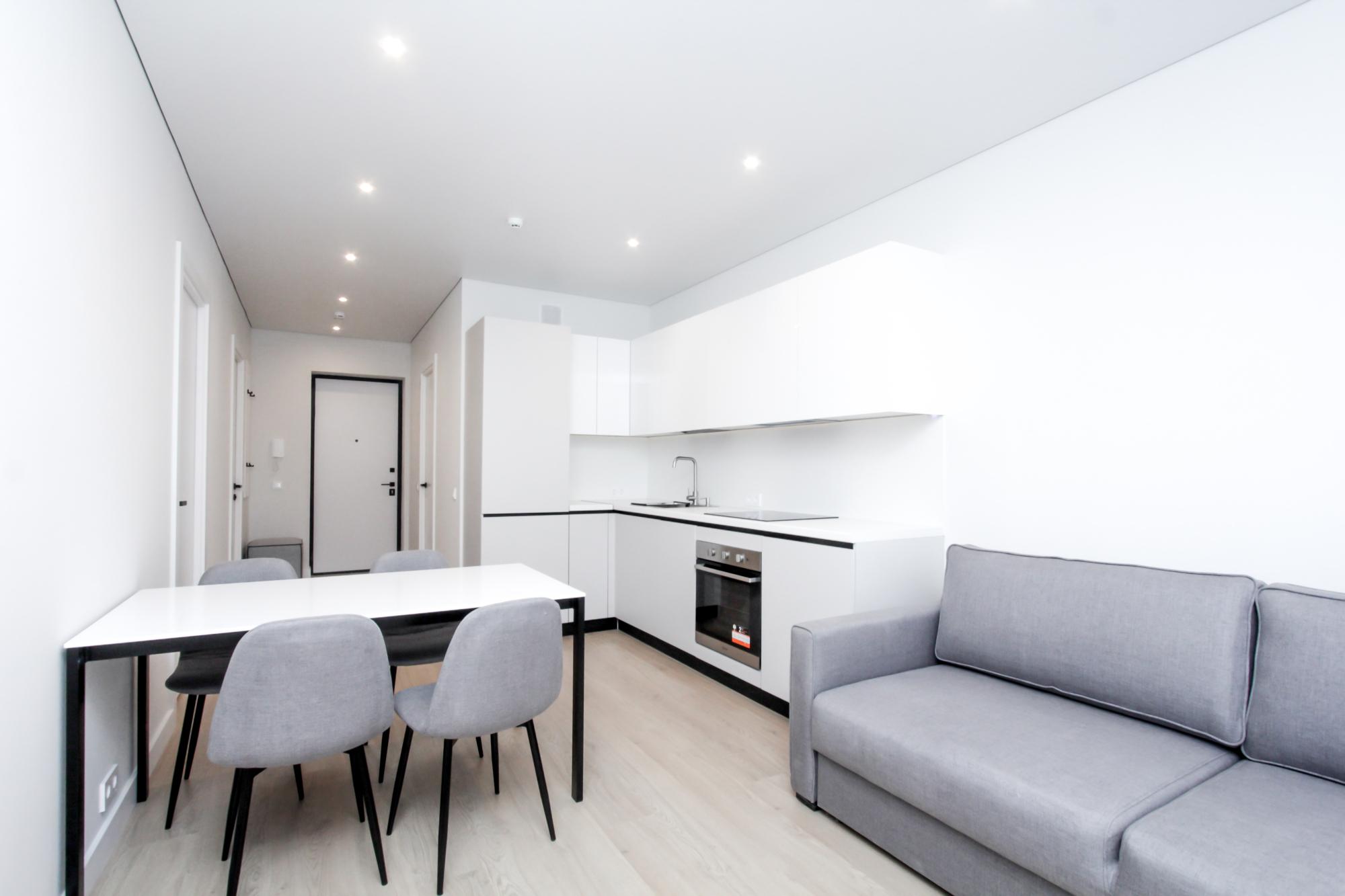 Интерьер выполнен в нейтральной цветовой гамме. Жилье оборудовано всем необходимым: кухня оснащена встроенной бытовой техникой (холодильник, варочная панель, духовой шкаф), а в комнатах установлены кондиционеры.