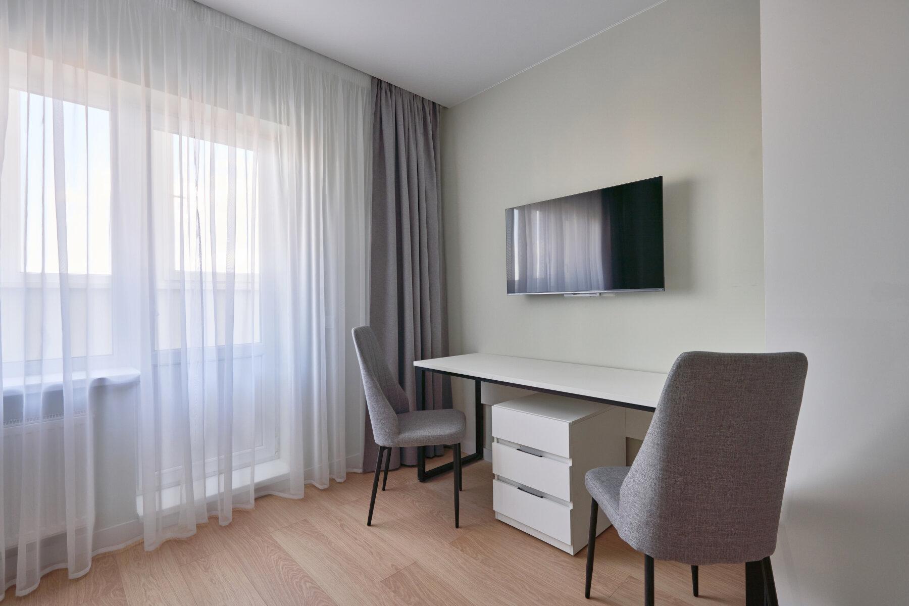 В зависимости от площади и планировки, жилье укомплектовано всей необходимой техникой и мебелью для комфортного проживания.