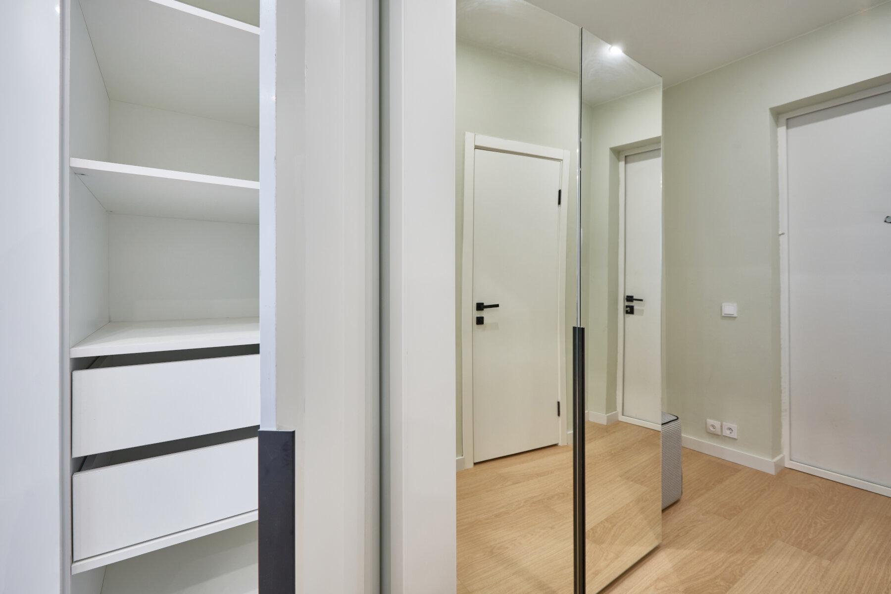 Интерьер выполнен в нейтральной цветовой гамме. Жилье оборудовано всем необходимым: кухня оснащена встроенной бытовой техникой (холодильник, варочная панель, духовой шкаф), а в комнатах установлены кондиционеры.