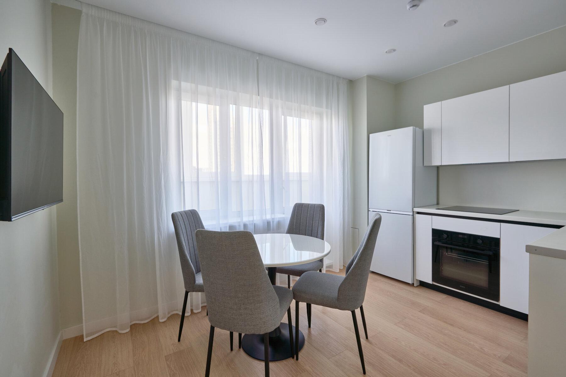 В зависимости от площади и планировки, жилье укомплектовано всей необходимой техникой и мебелью для комфортного проживания.